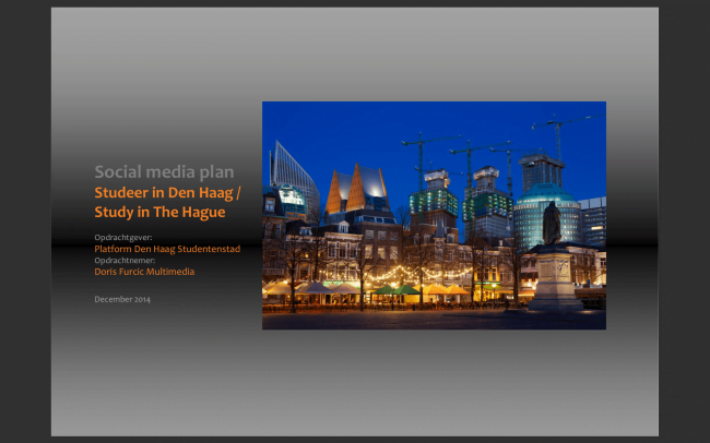 Met een analyse van alle socialmediakanalen, welke wel/niet door de doelgroep gebruikt werden, vervolgens kwamen de tips en het advies aan te pas. In verband met beperkte budget en vele kansen, werd toentertijd door mij ‘Study in The Hague’ op FB in het leven geroepen.
